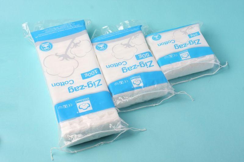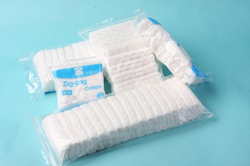 Absorbent zigzag cotton wool are commonly purchased by customers in large quantities to hospital, clinic, pharmacy and so on. You can be confident,becasue we believe in quality. We are specialized in cotton and gauze products since 1988. All our items come with certification CE, ISO13485.FDA