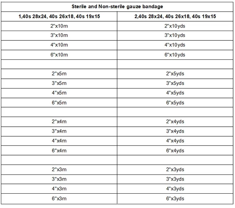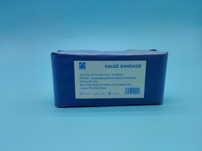 In accordance with the customers' requirements, We can produce different kinds of medical gauze bandage with different size, such as:10cm*3yds,19*15mesh standard packing,1roll wrapped by white paper ,12rolls wrapped by blue paper
