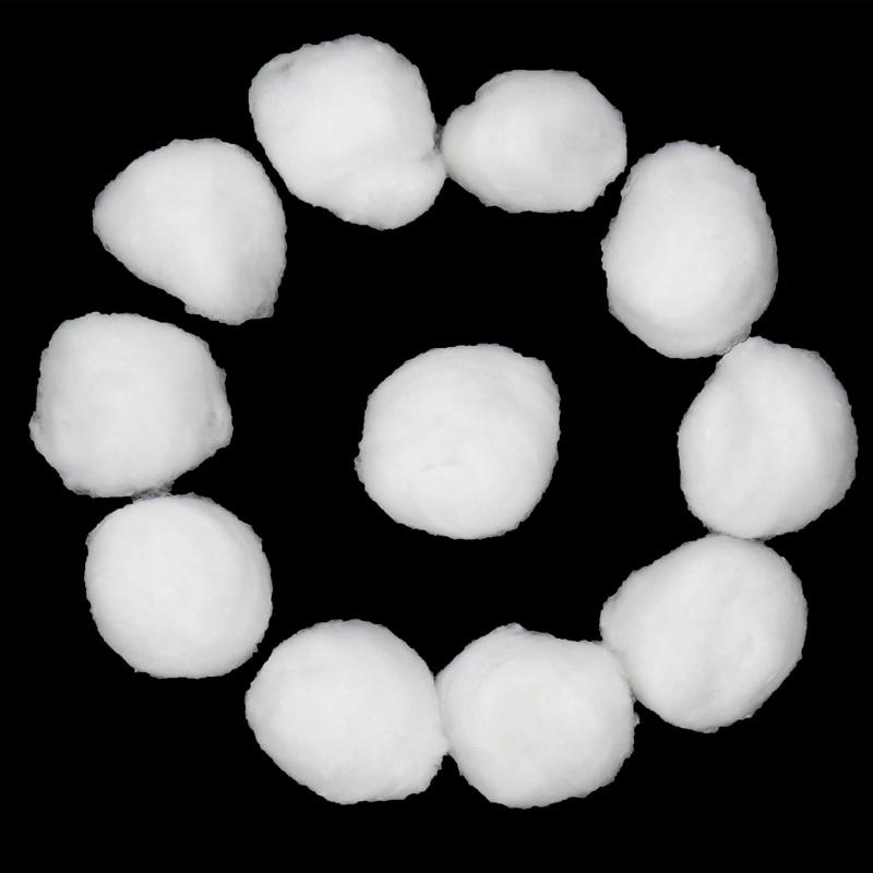 Pure 100% bleached cotton ensure the product soft and hydrophilic. Superior absorbency makes the cotton ball perfect for absorbing blood any exudates. In accordance with the customers' requirements, We can produce different size and quality of cotton ball.Such as short fiber and long fiber cotton ,comber cotton .The cotton ball are perfect for operation.