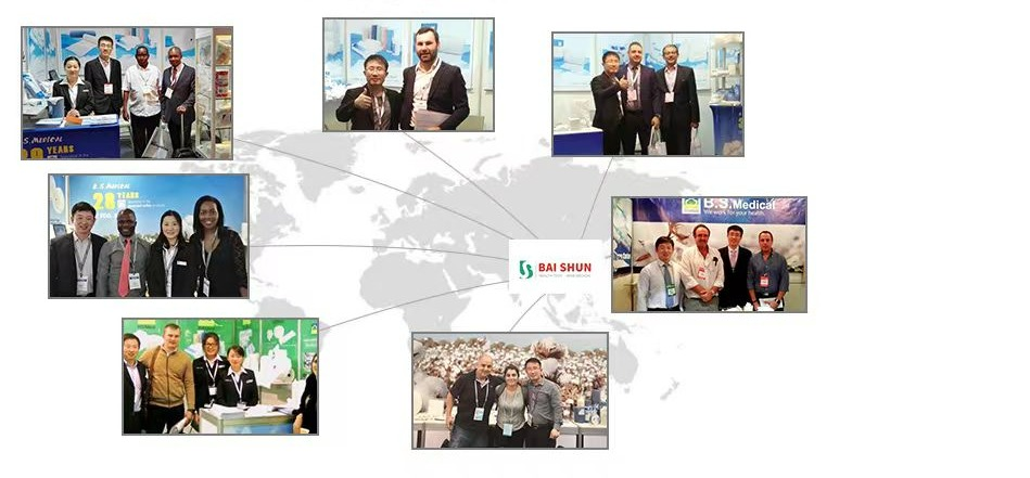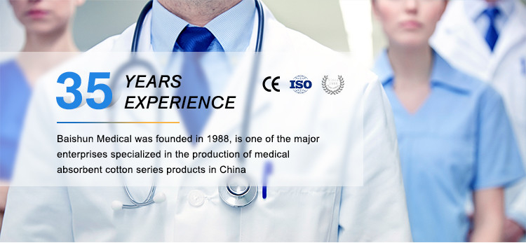 BAI SHUN medical is a professional supplier of medical product development, covering thousand of products in the medical field. We have our own factory which established in 1988 which specialized in the production of medical absorbent cotton series product,gauze product, non woven products, all kinds of plasters, bandages, tapes and the other medical products. And we are also developing more rapid test,blood pressure monitor,blood glucose,Injection Syring,wheelchair,walker,and so on.